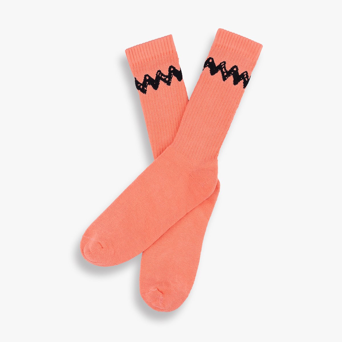 Classic Peanuts Charlie Brown socks in pink / black with knitted zig zag design.