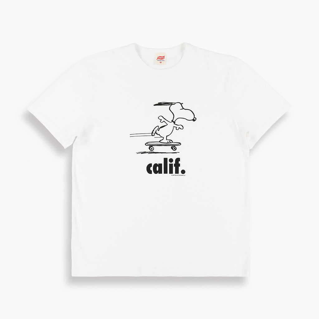 White premium weight soft 100% Portuguese cotton tee with vintage 70s Peanuts print